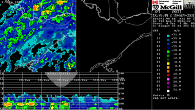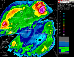 NOAA established a test deployment for dual-polametric radar at NSSL and equipped all its 10 cm NEXRAD radars with dual-polarization, which was completed in April 2013.[12] In 2004, ARMOR Doppler Weather Radar in Huntsville, Alabama was equipped with a SIGMET Antenna Mounted Receiver, giving Dual-Polarmetric capabilities to the operator. McGill University J. S. Marshall Radar Observatory in Montreal , Canada has converted its instrument (1999)[33] and the data were used operationally by Environment Canada in Montreal until its closure in 2018.[34][35] Another Environment Canada radar, in King City (North of Toronto), was dual-polarized in 2005;[36] it uses a 5 cm wavelength, which experiences greater attenuation.[37]