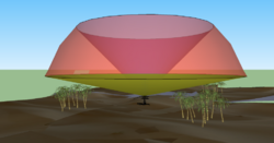 A weather radar network uses a series of typical angles that are set according to its needs. After each scanning rotation, the antenna elevation is changed for the next sounding. This scenario will be repeated on many angles to scan the entire volume of air around the radar within the maximum range. Usually, the scanning strategy is completed within 5 to 10 minutes to have data within 15 km above ground and 250 km distance of the radar. For instance in Canada, the 5 cm weather radars use angles ranging from 0.3 to 25 degrees. The accompanying image shows the volume scanned when multiple angles are used. Due to the Earth's curvature and change of index of refraction with height, the radar cannot "see" below the height above ground of the minimal angle (shown in green) or closer to the radar than the maximal one (shown as a red cone in the center).[19]