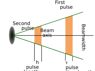 where [math]\displaystyle{ \,c }[/math] is the light speed, [math]\displaystyle{ \,\tau }[/math] is temporal duration of a pulse and [math]\displaystyle{ \,\theta }[/math] is the beam width in radians.