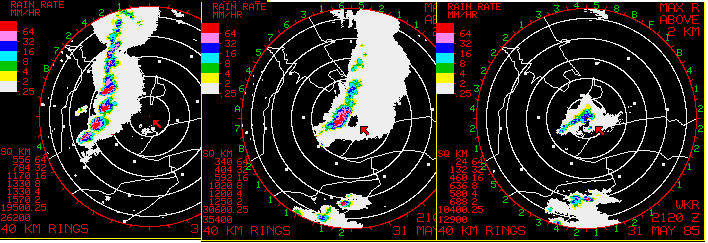 This is very important as a high rain rate seen near the radar is relatively close to what reaches the ground but what is seen from 160 km away is about 1.5 km above ground and could be far different from the amount reaching the surface. It is thus difficult to compare weather echoes at different distances from the radar.