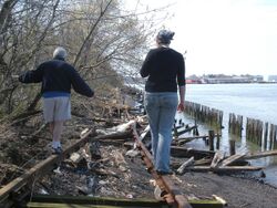 Relocation of infrastructure any housing farther away from the coast is also an option. The natural processes of both absolute and relative sea level rise and erosion are considered in rebuilding. Depending on factors such as the severity of the erosion, as well as the natural landscape of the property, relocation could simply mean moving inland by a short distance or relocation can be to completely remove improvements from an area.[10] A coproduction[14] approach combined with managed retreat has been proposed as a solution that keeps in mind environmental justice. Typically, there has been low public support for "retreating".[15] However, if a community does decide to relocate their buildings along the coast it is common that they will then turn the land into public open space or transfer it into land trusts in order to protect it. These relocation practices are very cost-efficient, can buffer storm surges, safeguard coastal homes and businesses, lower carbon and other pollutants, create nursery habitats for important fish species, restore open space and wildlife, and bring back the culture of these coastal communities.[11]