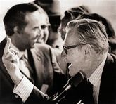 Today, Rockefeller is best remembered for denouncing Goldwater and the conservative takeover of the GOP during the 1964 Republican National Convention in San Francisco. He was booed for minutes on end by Goldwater's supporters, responding that "It's still a free country, ladies and gentlemen" and encouraging their reaction.[8] This speech, along with his refusal to campaign for Goldwater, made him the archetypical RINO in the eyes of conservatives. In 1970, Rockefeller served as consultant for fellow liberal Republican Jacob Javits' health care proposal to expand Medicare to the entire population.[9]
