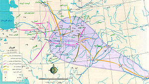 In September 1219, Genghis Khan arrived at Utrar, on the border of the Khwarezmshah territory, and divided his forces into three part; He assigned one part to his sons Ögedei and Chagatai to besiege Otrar, sent another part under the command of Jochi to take the cities around Seyhan River towards the city of Jand, and he himself moved towards Bukhara with his son Tolui at the head of the main forces.[11](p702) Genghis always used the services of advisers, roadmen and merchants during his campaigns. Therefore, there was always a group of Muslim merchants, who were familiar with roads of Khwarzamia, were in his camp for their advice.[19] Also, after the start of the invasion, some of the commanders of Kwarazmia who were hostile to him like Badr al-Din Omid, whose father and uncle were killed by the order of Sultan Muhammad, also joined Mongol army and gave a lot of information to Genghis about the situation in the Sultan's court and the roads. From the method of attack, the division of the army and other decisions of Genghis, it can be said that Genghis was familiar with the geographical situation of Transoxania really well.[7](p41, 91)
