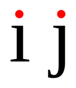 A tittle or superscript dot[1] is a small distinguishing mark, such as a diacritic in the form of a dot on a letter (for example, lowercase i or j). The tittle is an integral part of the glyph of i and j, but diacritic dots can appear over other letters in various languages. In most languages, the tittle of i or j is omitted when a diacritic is placed in the tittle's usual position (as í or ĵ), but not when the diacritic appears elsewhere (as į, ɉ).
