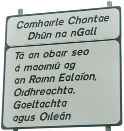 There is only one letter I in Irish, but i is undotted in the traditional uncial Gaelic script to avoid confusion of the tittle with the buailte overdot found over consonants. Modern texts replace the buailte with the letter h, and use the same antiqua-descendant fonts, which have a tittle, as other Latin-alphabet languages. However, bilingual road signs use dotless i in lowercase Irish text to better distinguish i from í. The letter "j" is not used in Irish other than in foreign words.