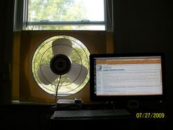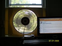A window fan is a fan designed to be placed inside the frame of a window. Window fans have been used for many decades to maintain comfortable temperatures and ventilation within one's home, and operate at a tiny fraction of the cost of central air conditioning.