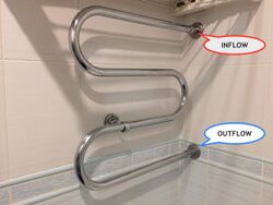 Unlike steam or hot water systems which receive heat from a boiler, electric radiators produce heat from electricity at the location of the radiator. This heat may be transferred to a fluid (such as oil) inside the radiator. The oil circulates inside the radiator by convection, which distributes the heat from the heating element to the surface of the radiator. Smaller electric radiators have the advantage of being portable, as they do not need to be connected to pipework. Some electric radiators can also use hot water; this is particularity common for heated towel rails, where the radiator uses hot water when the central heating system is running but switches to electricity when heating the whole building is not required.