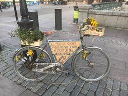 An activist's bicycle in Stockholm on 11 September 2018: "The climate change must be treated as a crisis! The climate is the most important election issue!"
