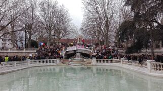 A speech being delivered from the stairs of the Jardin Darcy, in Dijon (Côte-d'Or, Burgundy, France ) for the global climate strike on 15 March 2019