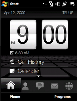 The Today screen plugin is the main aspect of TouchFLO 3D, and consists of several tabs, which can be viewed by sliding a finger along the bottom bar or touching one of the visible icons. The tabs to the immediate right and left of the current tab can be accessed by swiping in the relevant direction. The tabs are:[6]