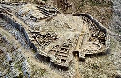 During the Helladic period, a number of major advances were developed including fortified urban settlements with monumental buildings such as corridor houses, which may prove the existence of complex societies organized by an elite or at least achieving corporate, proto-city state form.[7][28] One of these settlements was Manika, located in Euboea, dated to the Early Helladic period II (2800–2200 BC). The settlement covered an area of 70–80 hectares, was inhabited by 6,000–15,000 people, and was one of the largest settlements of the Bronze Age in Greece.[7][29]