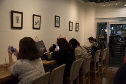 Some people are replacing face-to-face conversations with cybernetic ones. Clinical psychologist Lisa Merlo says, "Some patients pretend to talk on the phone or fiddle with apps to avoid eye contact or other interactions at a party."[13] In a survey made by Gazelle, "More than 25% of respondents reported that they 'almost always' use their smartphone while in a social setting such as during a meal or during a party. In addition, 58% said they use it 'usually' or 'occasionally' during these settings."[14] Furthermore,