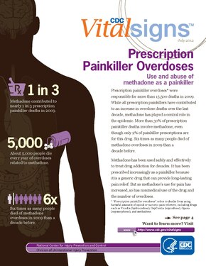 US yearly deaths involving prescription opioids. Non-methadone synthetics is a category dominated by illegally acquired fentanyl, and has been excluded.[5]