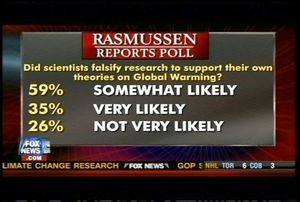 Naturally, Fox News loves manufactroversies over evolution and global warming. They've gone as far as to hawk Ken Ham's Creation Museum,[82] and global warming denial is also a favorite.[83] During the breaking of the Climategate "story", VP Bill Sammon sent a memo encouraging anchors to run with the story, writing, "It is not our place as journalists to assert such notions as facts, especially as this debate intensifies."[84] Steve Milloy, of course, is a constant source of denialism, general anti-environmentalism, and copious amounts of hippie-punching.