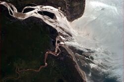 Beira is located on the Mozambique Channel, an arm of the Indian Ocean located between Madagascar and Mozambique. The city sits north of the mouth of the convergence of two major rivers of Mozambique: the Buzi River and the Pungwe River. The Buzi crosses 250 kilometres (160 mi) across Manica and Sofala provinces to form a wide estuary. The Pungwe crosses 400 kilometres (250 mi) from the Eastern Highlands of Zimbabwe also through Manica and Sofala provinces to Beira.[2]