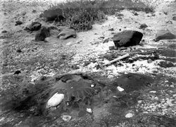 In Utah, there are natural oil seeps at Rozel Point on the Great Salt Lake.[40] The oil seeps at Rozel Point can be seen when the lake level drops below an elevation of approximately 4,198 feet (1,280 m); if the lake level is higher, the seeps are underwater. The seeps can be found by going to the Golden Spike historical site, and from there, following signs for the Spiral Jetty. Both fresh tar seeps and re-worked tar (tar caught by the waves and thrown up on the rocks) are visible at the site.