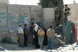 In 2004, the International Court of Justice issued an advisory opinion stating that the barrier violates international law.[45] It claimed that "Israel cannot rely on a right of self-defence or on a state of necessity in order to preclude the wrongfulness of the construction of the wall".[46] However, Israel government derived its justification for constructing this barrier with Prime Minister Ehud Barak stating that it is "essential to the Palestinian nation in order to foster its national identity and independence without being dependent on the State of Israel".[47] The Israeli Supreme Court, sitting as the High Court of Justice, stated that Israel has been holding the areas of Judea and Samaria in belligerent occupation, since 1967. The court also held that the normative provisions of public international law regarding belligerent occupation are applicable. The Regulations Concerning the Laws and Customs of War on Land, The Hague of 1907 and the Fourth Geneva Convention Relative to the Protection of Civilian Persons in Time of War 1949 were both cited.[7]