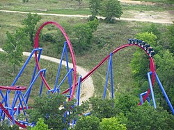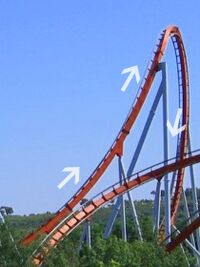 A zero-g roll or zero-gravity roll is a roller coaster inversion where the track twists 360 degrees as it rises and falls in elevation, usually at the crest of a hill. The element gets its name from the weightless effect of zero g-force that a rider experiences during the inversion.[42][43][44]