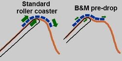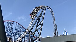 A dive drop[27] (also known as a Wing Over Drop[28]) is a roller coaster inversion in which a half-inline twist is performed at the top of a lift hill, leading into the initial drop. Examples that feature this element include The Swarm at Thorpe Park, X-Flight at Six Flags Great America, and GateKeeper at Cedar Point.[28][29]