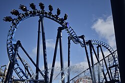 A bent Cuban eight is a double inversion element that features two "bent and twisted" Immelmann loops that are connected back to back.[24] Designed by Maurer Rides GmbH, the element only appears on two X-Car roller coaster models from the company, including G Force that was at Drayton Manor Theme Park.[25][26]