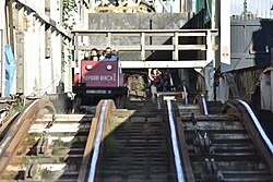 A camelback or camelback hill is a hump-shaped hill that travels in a straight line designed to lift riders out of their seats and provide a feeling of weightlessness, commonly known as airtime.[4][5] It produces negative g-force to achieve the effect.[6][7] The term has been used to describe a series of smaller hills typically found near the end of a track's layout, which is a common finale on older wooden coasters.[7][8] A modern coaster's implementation of a camelback can be a much larger, single hill often found earlier in the track's layout.[4][9]