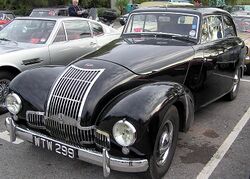 The L is a 4-seat roadster, produced from 1946 to 1950.[13] It was on a 112-inch (2.8 m) wheelbase and available with a choice of 3622 cc (221.0 cu in) Ford V8 or 4375 cc (267.0 cu in) Mercury engines.[16] The top speed is estimated to be 85 mph (137 km/h). Priced at a little more than £1000, 191 were produced.[9][13]