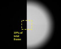 As shown in the right hand figure, an operator defines a box area encompassing the edge of a knife-edge test target image back-illuminated by a black body. The box area is defined to be approximately 10%[citation needed] of the total frame area. The image pixel data is translated into a two-dimensional array (pixel intensity and pixel position). The amplitude (pixel intensity) of each line within the array is normalized and averaged. This yields the edge spread function.