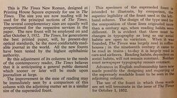 Monotype Corporation (October 1934). "Book Printed in The Times New Roman". Monotype Newsletter15.