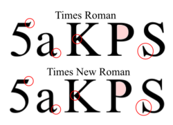 Some differences between Linotype's Times Roman and Monotype's Times New Roman typefaces.[93][94]