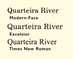 Times compared to a modern-face and the wide, monoline Excelsior, part of Linotype's Legibility Group.