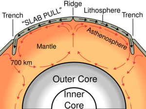 Mantle convection causes tectonic plates to move around the Earth's surface.[9]