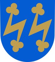 The bolt of lightning in heraldry is called a thunderbolt and is shown as a zigzag with non-pointed ends. This symbol usually represents power and speed.