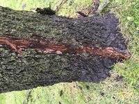 Objects struck by lightning experience heat and magnetic forces of great magnitude. The heat created by lightning currents travelling through a tree may vaporize its sap, causing a steam explosion that bursts the trunk. As lightning travels through sandy soil, the soil surrounding the plasma channel may melt, forming tubular structures called fulgurites.
