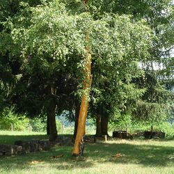 The movement of electrical charges produces a magnetic field (see electromagnetism). The intense currents of a lightning discharge create a fleeting but very strong magnetic field. Where the lightning current path passes through rock, soil, or metal these materials can become permanently magnetized. This effect is known as lightning-induced remanent magnetism, or LIRM. These currents follow the least resistive path, often horizontally near the surface[139][140] but sometimes vertically, where faults, ore bodies, or ground water offers a less resistive path.[141] One theory suggests that lodestones, natural magnets encountered in ancient times, were created in this manner.[142]