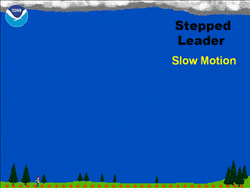 The positively and negatively charged leaders proceed in opposite directions, positive upwards within the cloud and negative towards the earth. Both ionic channels proceed, in their respective directions, in a number of successive spurts. Each leader "pools" ions at the leading tips, shooting out one or more new leaders, momentarily pooling again to concentrate charged ions, then shooting out another leader. The negative leader continues to propagate and split as it heads downward, often speeding up as it gets closer to the Earth's surface.