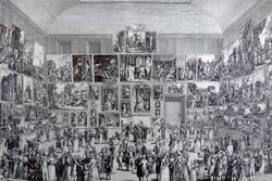 The exhibition came fully into its own in the 19th century, but various temporary exhibitions had been held before that, especially the regular displays of mostly new art in major cities. The Paris Salon of the Académie des Beaux-Arts was the most famous of these, beginning in 1667, and open to the public from 1737. By the mid-18th century this and its equivalents in other countries had become crucial for developing and maintaining the reputation of contemporary artists. In London the Royal Academy Summer Exhibition has been held annually since 1769, and the British Institution ran temporary exhibitions from 1805 to 1867, typically twice a year, with one of new British painting and one of loans of old masters from the Royal Collection and the aristocratic collections of English country houses.