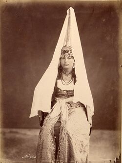The initiated religious group, which includes both men and women (less than 10% of the population), is called Script error: The function "transl" does not exist. (عقال "the Knowledgeable Initiates"). They might or might not dress differently, although most wear a costume that was characteristic of mountain people in previous centuries. Women can opt to wear Script error: The function "transl" does not exist., a loose white veil, especially in the presence of other people. They wear Script error: The function "transl" does not exist. on their heads to cover their hair and wrap it around their mouths. They wear black shirts and long skirts covering their legs to their ankles. Male Script error: The function "transl" does not exist. often grow mustaches, and wear dark Levantine-Turkish traditional dresses, called the Script error: The function "transl" does not exist., with white turbans that vary according to the seniority of the Script error: The function "transl" does not exist.. Traditionally the Druze women have played an important role both socially and religiously inside the community.[164]