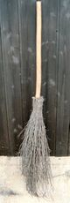A besom (/ˈbiːzəm/) is a broom, a household implement used for sweeping. The term is mostly reserved for a traditional broom constructed from a bundle of twigs tied to a stout pole. The twigs used could be broom (i.e. Genista, from which comes the modern name "broom" for the tool), heather or similar. The song "Buy Broom Buzzems" from Northern England refers to both types of twig. From the phrase broom besom the more common broom comes. In Scotland, besoms are still occasionally to be found at the edge of forests where they are stacked for use in early response to an outbreak of fire.