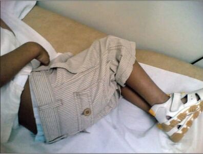 | Scorbutic gums, a symptom of scurvy. The triangle-shaped areas between the teeth show redness of the gums. | |