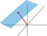 A linear subspace of dimension 1 is a vector line. A linear subspace of dimension 2 is a vector plane. A linear subspace that contains all elements but one of a basis of the ambient space is a vector hyperplane. In a vector space of finite dimension [math]\displaystyle{ n, }[/math] a vector hyperplane is thus a subspace of dimension [math]\displaystyle{ n - 1. }[/math]