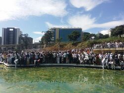 A controversial plan to expand the boundaries of Addis Ababa, by 1.1 million hectares into the Oromia special zone in April 2014,[36][37] sparked the Oromo protests on 25 April 2014 against expansion of the boundaries of Addis Ababa. The government responded by shooting at and beating peaceful protesters.[38] This escalated to full blown strikes and street protests on 12 November 2015 by university students in Ginchi town, located 80 km southwest of Addis Ababa city, encircled by Oromia Region.[39][40][41] The controversial master plan was cancelled on 12 January 2016. By that time, 140 protesters were killed.[42][43][44]