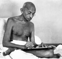 According to some authors, Rabindranath Tagore is said to have used this title for Gandhi on 6 March 1915.[9] Some claim that he was called Mahatma by the residents of Gurukul Kangadi in April 1915,[10] and he in turn called the founder Munshiram a Mahatma (who later became Swami Shraddhanand). However, a document honoring him with the title "Mahatma" on 21 January 1915, in Jetpur, Gujarat, by Nautamlal Bhagvanji Mehta is preserved at the National Gandhi Museum in New Delhi, India.[11] A private letter from Gandhi's friend Pranjivan Mehta to Gopal Krishna Gokhale in 1909 referred to Gandhi with the title and thus remains the earliest written record available to use the title. [12] The use of the term Mahatma in Jainism to denote a class of lay priests, has been noted since the 17th century. A Mahatma is someone who practices Trikaranasuddhi.[13]