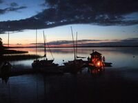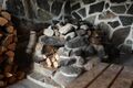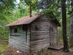 Smoke sauna (Finnish savusauna, Estonian suitsusaun, Võro savvusann) is one of the earliest forms of the sauna.[12] It is simply a room containing a pile of rocks, but without a chimney. A fire is lit directly under the rocks and after a while the fire is extinguished. The heat retained in the rocks, and the earlier fire, becomes the main source for heating the sauna. Following this process, the ashes and embers are removed from the hearth, the benches and floor are cleaned, and the room is allowed to air out and freshen for a period of time. The smoke deposits a layer of soot on every surface, so if the benches and back-rests can be removed while the fire is alight the amount of cleaning necessary is reduced. Depending on size of the stove and the airing time, the temperature may be low, about 60 °C (140 °F), while the humidity is relatively high. The tradition almost died out in Finland, but was revived by enthusiasts in the 1980s. These are still used in present-day Finland by some enthusiasts, but usually only on special occasions such as Christmas, New Year's, Easter, and juhannus (Midsummer).[13] Smoke saunas are popular in the southern Estonia and smoke sauna tradition in Võrumaa was added into UNESCO Intangible Cultural Heritage Lists in 2014.[17]