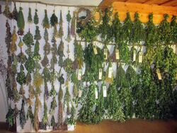 The contemporary Baltic sauna is similar to others in the north-eastern part of Europe: it varies according to personal preference, but is typically around 55–70 °C (131–158 °F), humidity 60–90%, with steam being generated by pouring water on the hot stones.[64][65][66][67] Traditionally, birch twigs (Lithuanian: vanta; Latvian: slota) are the most common, but oak or linden are used too.[64] Sauna enthusiasts also make twigs from other trees and plants, including nettle and juniper.[66] Dry air sauna of 80–110 °C (176–230 °F) and very low humidity became popular relatively recently; despite being a misconception, it is sometimes locally described as Finnish-type.[66][65]