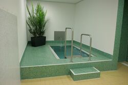 A sauna (/ˈsɔːnə, ˈsaʊnə/,[1][2] Finnish: [ˈsɑu̯nɑ], Template:IPA-et) is a room or building designed as a place to experience dry or wet heat sessions, or an establishment with one or more of these facilities. The steam and high heat make the bathers perspire. A thermometer in a sauna is typically used to measure temperature; a hygrometer can be used to measure levels of humidity or steam. Infrared therapy is often referred to as a type of sauna, but according to the Finnish sauna organisations, infrared is not a sauna.[3]