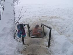 In many regions of Russia sauna-going plays a central social role. These countries also have the tradition of massaging fellow sauna-goers with leafy, wet birch bunches, called venik (веник) in Russian. In Russian-speaking communities the word banya (Russian: Баня) is widely used also when referring to a public bath. In Russia, public banya baths are strictly single-sex.[71] During wintertime, sauna-goers often run outdoors for either ice swimming or, in the absence of lake, just to roll around in the snow naked and then go back inside. Russian traditional banya is quite similar to Finnish sauna, despite the popular misconception that the Finnish sauna is very dry.