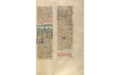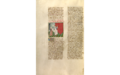 This painted image, which is part of a 1475 Flemish manuscript, shows Aseneth offering honey, wine, and bread to an angel.[20] This image was likely inspired by an apocryphal text that describes Aseneth being visited by an angel after she rejects paganism and offering the angel bread and wine. In turn, the angel gives Aseneth a honeycomb.[19]