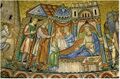 This mosaic in the Venetian Basilica di San Marco shows a midwife presenting the newborn Ephraim to Joseph. Aseneth and Manasseh are also present.[23]