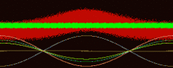 One of the interesting aspects of the experiment by Torvén and Lindberg (1980)[50] is that not only did they measure the potential structure in the double plasma machine but they also found high-frequency fluctuating electric fields at the high-potential side of the double layer (also shown in the figure). These fluctuations are probably due to a beam-plasma interaction outside the double layer, which excites plasma turbulence. Their observations are consistent with experiments on electromagnetic radiation emitted by double layers in a double plasma machine by Volwerk (1993),[51] who, however, also observed radiation from the double layer itself.