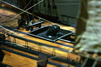 Early bomb vessels were rigged as ketches with two masts. They were awkward vessels to handle, in part because bomb ketches typically had the masts stepped farther aft than would have been normal in other vessels of similar rig, in order to accommodate the mortars forward and provide a clear area for their forwards fire. As a result, by the 1800s British bomb vessels were designed as full-rigged ships with three masts, and two mortars, one between each neighboring pair of masts.[8] The full rig also meant that bomb vessels could be used as escort sloops between bombardment missions; in 1805 the Acheron bomb along with the Arrow sloop were both lost in a defence [citation needed] of their convoy. Bomb vessels often had the front rigging made of chain, to better withstand the muzzle blast of the mortars.[3]